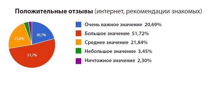 Важную роль играют и положительные отзывы среди знакомых и интернет-пользователей (72%).